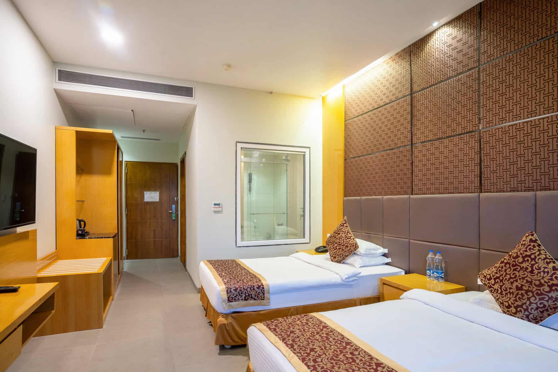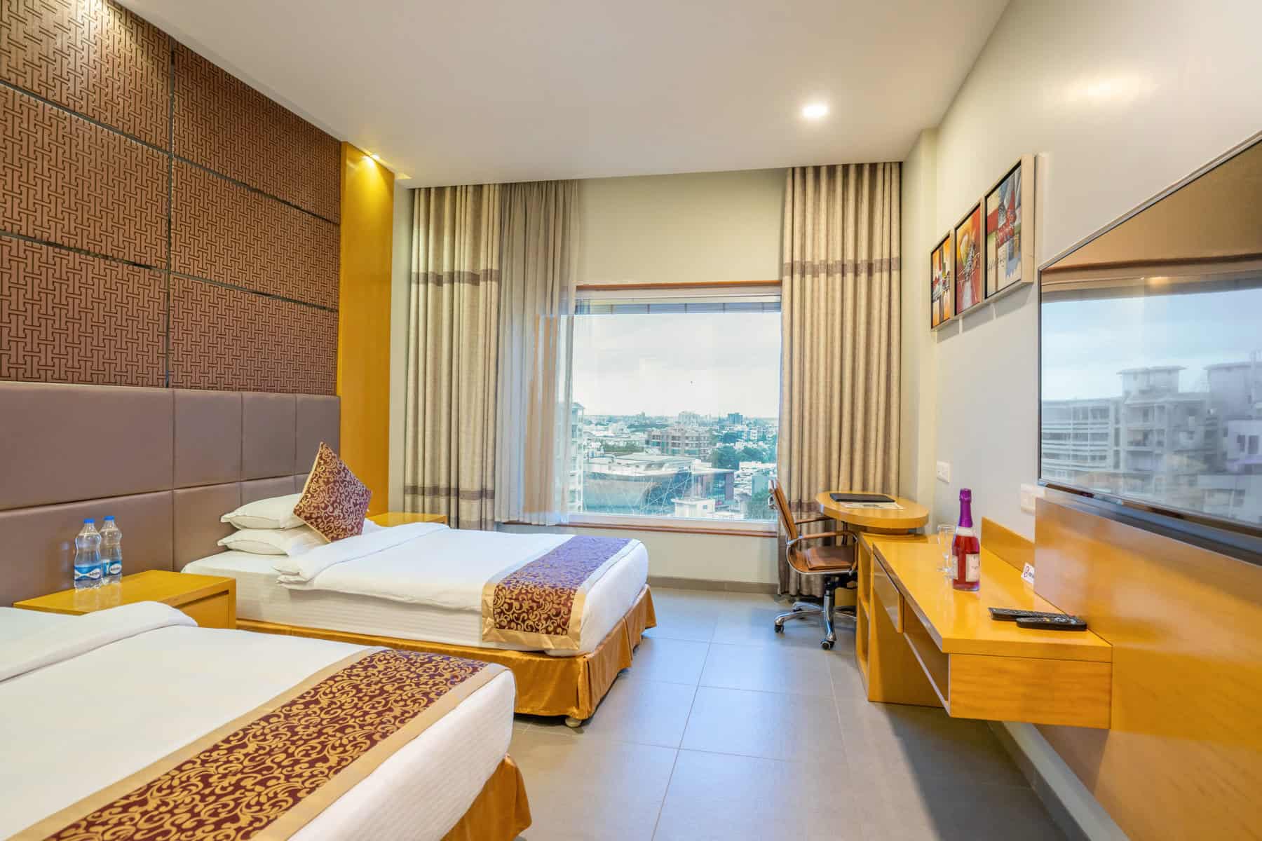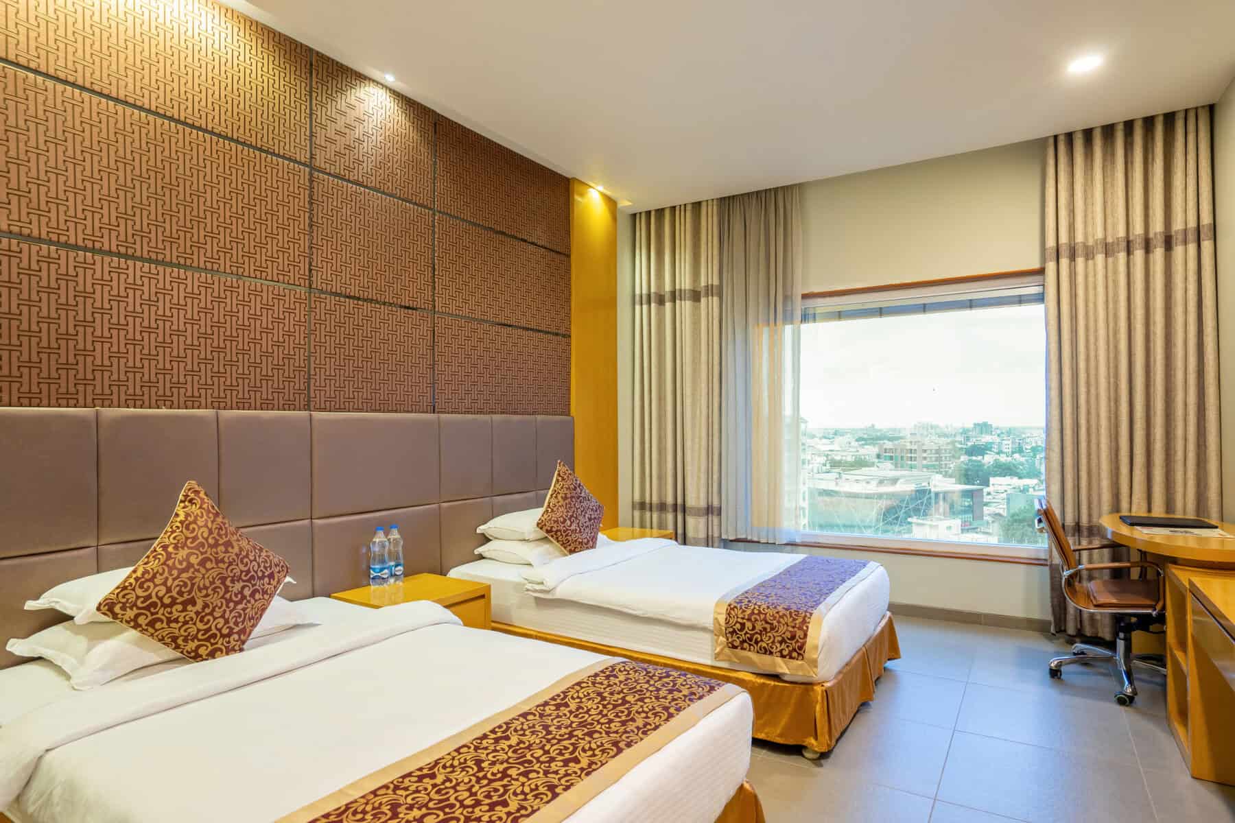 Our Twin Deluxe Rooms are designed with a contemporary and elegant flair, providing a sophisticated atmosphere that complements your business needs. The modern aesthetics and thoughtful layout create an ambiance that’s both calming and inspiring. These rooms are furnished with two separate beds, ensuring you and your colleague can enjoy a restful night without any worries. Each bed is carefully crafted for maximum comfort, guaranteeing you a rejuvenating sleep experience.